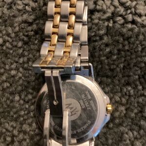 Up for your consideration is a gently used Swiss made Raymond Weil Tango 5360 two toned stainless steel watch. This watch works perfect and has a new battery installed. The watch is water-resistant up to 50m (5 ATM) and has a date indicator on the dial. It has a double-locking fold-over clasp bracelet and will fit a 6-6.2 inch wrist. I do not have the extra links to enlarge it. This is a gorgeous timepiece that will be treasured for years.