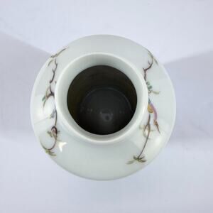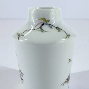 The Raynaud & Co. Limoges Porcelain Bud Vase is a vintage piece from the 1950s, hand-painted with an Asian fishing scene. Made of glossy porcelain, the vase features intricate hand-painted details in a multicolor palette. Measuring 3 inches tall and 1.5 inches wide, this miniature vase weighs 4 ounces. The piece comes in its original boxed packaging, reflecting its craftsmanship and timeless appeal. Made in France by Limoges, this vase is a unique addition to any decorative pottery and glassware collection.