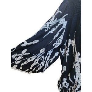 This Rayon Embroidered Elastic Bodice Black Boho Peasant Top in Plus Size 22/24 is a casual and comfortable blouse perfect for the spring, summer, and fall seasons. The 3/4 bell sleeves, round neckline, and pullover closure add to the relaxed fit of this lightweight and easy-to-care-for top. The black rayon fabric with embroidered accents gives it a peasant style look that is both stylish and versatile. Perfect for everyday wear, this boho top is machine washable for added convenience. Made in China, this top is a must-have for any woman's wardrobe. CLOTHING AND FABRIC ITEMS: All clothing and fabric items have been steam cleaned and/or washed.