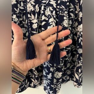 Rayon Flowy Floral Navy and White Women's Top size L (F114)
