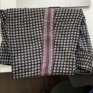 Super chic, black and magenta patterned pants. Comfy and great for work too. I love them, selling because they don’t fit anymore. I kept them well and they are in great shape. Size sm 6-8.