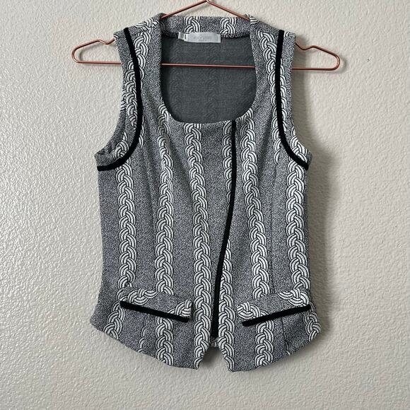 Rayure Paris Asymmetrical Moto Zip Vest Top textured jacquard braid knit black white, Size 34 (equivalent to a Size XS or 2, but please refer to measurements below). Good used condition, only worn a few times.
