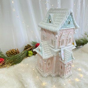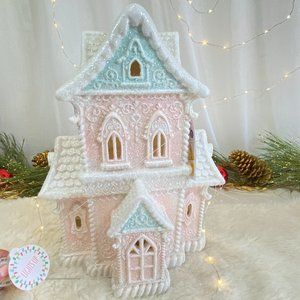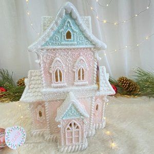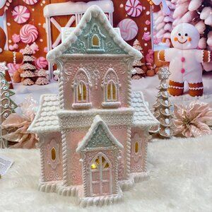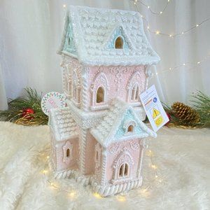Raz 14" WHITE ICING SCROLLWORK Led LIGHTED GINGERBREAD HOUSE Pastel Pink New