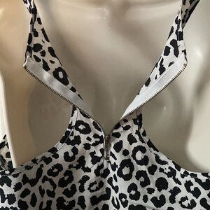 No tag but I believe it’s a forever 21 rayon material with a zip razor back