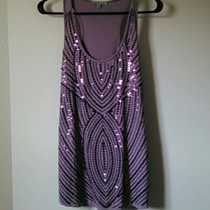 Lavender tank from Charlotte Russe, medium, worn 3x, 2 snags down in last pics