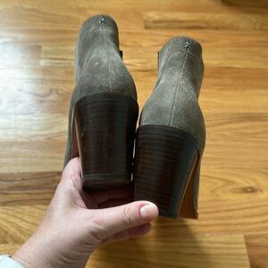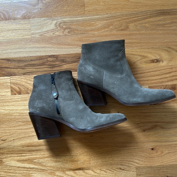 Suede booties to finish your best autumn outfit. Only worn once. Color Safari is gray-green.