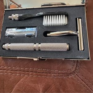 Perfect for weekend sleepovers or Travelling. Razor set and toothbrush in a silver box.