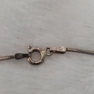 Silver necklace with a razorblade pendant on it. 20" chain and the pendant is 1.5" in length and 1" in width.