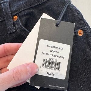 Never worn, with tags attached. High rise 90s style loose fit jeans from re/done. Color is “noir” which is a dark wash or could even be considered a washed black. Great quality and condition