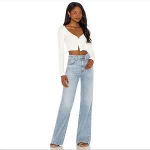 Re Ona’s ribbed cotton cardigan features a wide neckline, buttons down the center and extra-long sleeves that tips over the palm of your hand.