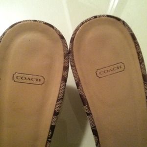 Coach authentic slides leather flap all leather sole no wear to fabric no wear anywhere on upper gorgeous makes any outfit a statement piece !!!!!