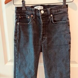Re/Done 70s Stove Pipe Jeans Cropped High Rise Jet Black
