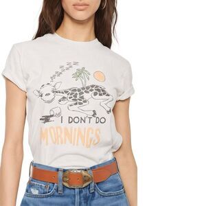 • Brand & Style: Re/Done 70s Tee with “I Don’t Do Mornings” Giraffe Graphic.