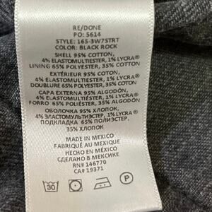 Re/Done Black High Rise Cotton Blend Denim Stretch Straight Leg Jeans Zip Fly Belt Loops Pocket Machine Wash