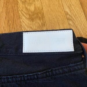 Re/Done Black High Waist Ankle Crop Distressed Jeans