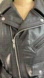 Chic black leather jacket with classic moto design. Features zippered pockets and belted waist. Ideal for a bold, stylish look.