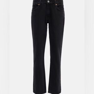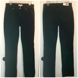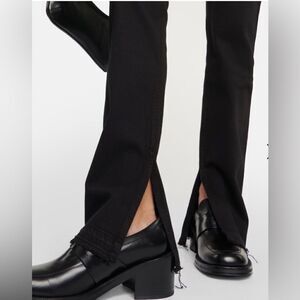 Chic black straight leg jeans with cool slit flare at ends! Perfect for any occasion. Timeless style by Re/Done.