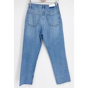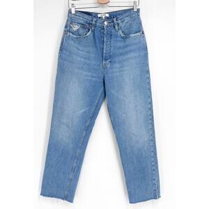 Re/Done Blue High Waisted 70s Ultra Stove Pipe Raw Hem Straight Leg Jeans Sz 28