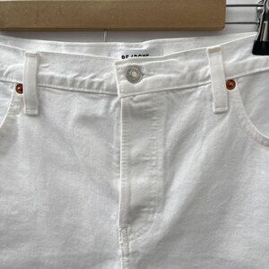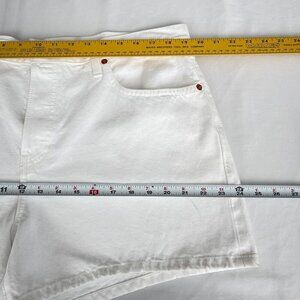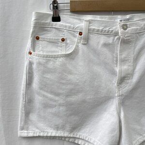 Tags: White denim shorts, Mid-Rise shorts, women's summer shorts, casual white shorts, button fly shorts, Re/Done shorts, size 32 shorts, cotton shorts, durable denim shorts, breathable shorts, white casual wear, summer casual shorts, Mexico-made shorts