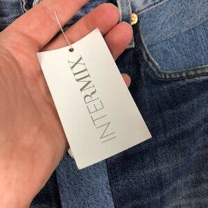 Front button closure, Front pockets, dyed back- no actual pockets, patchwork front. Frayed hem. Casual, trendy. High rise waist, 100% cotton, non stretch denim.