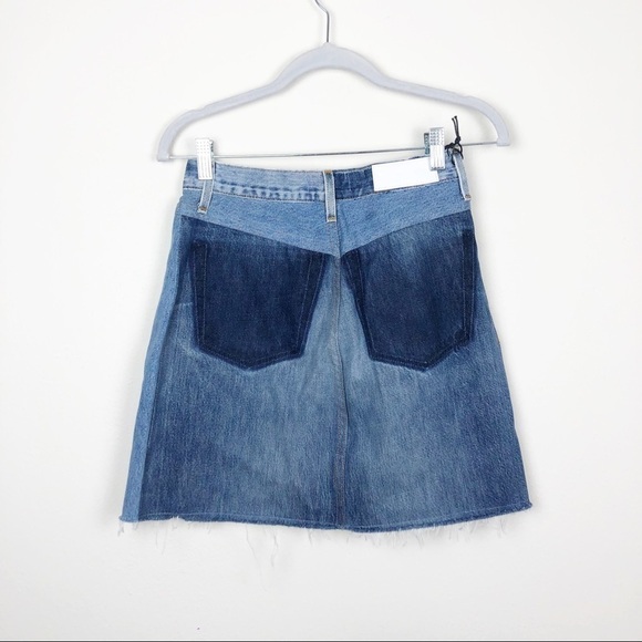 Re/Done Button Front Patchwork Denim Cotton Mini Skirt Blue Casual Short Size 2