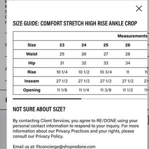 Re/Done Comfort Stretch High Rise Ankle Crop Jeans size 26, NWOT