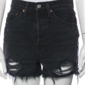 lightly worn black denim cut off shorts with light rips on the bottom!