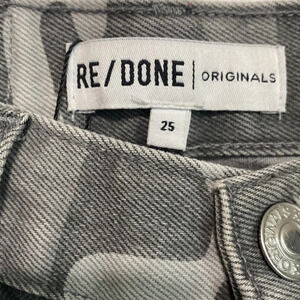Re/Done Gray Camo High Rise Ankle Crop Button Fly Raw Hem Jeans Size 25
