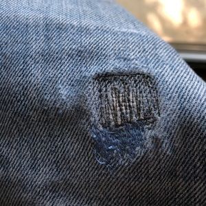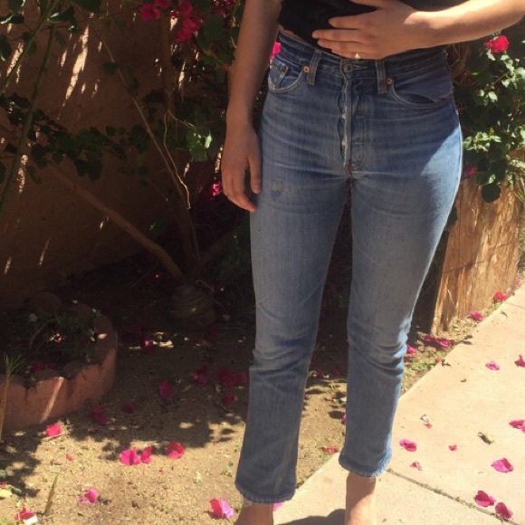 These Re/Done high rise Levi’s jeans are super flattering! They are a size 23, but they fit a true size 24. Patch on upper right thigh