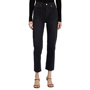 Re/Done High-Rise Stove Pipe Button Fly Straight Cropped Denim Jeans Black 29