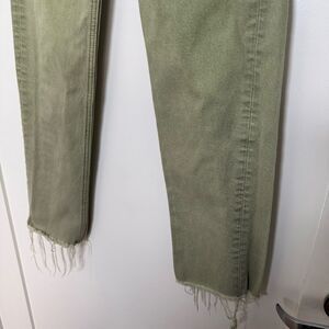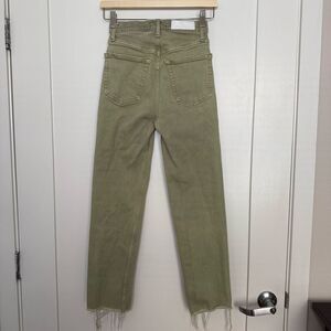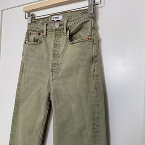 Re/Done Jeans Womens Sz 23 Sage Green 70s Ultra High Rise Stove Pipe Raw Hem