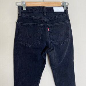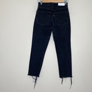 Re/Done Levi's High Rise Ankle Crop Raw Hem Distressed Black