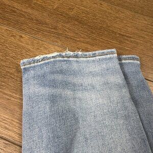 Mid-rise with straight fit down to ankle, new with tags, intentional distressing at cuff