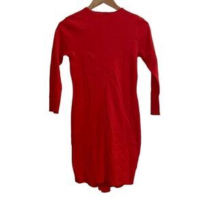 Re/Done NWOT Red Cotton Stretch Front Cinch Asymmetric 3/4 Sleeve Cocktail Dress