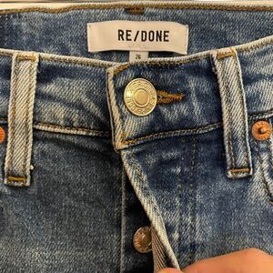 Re/Done NWT Designer 90’s High Rise Button Fly Ankle Crop Jeans in Bright Faded Blue 26