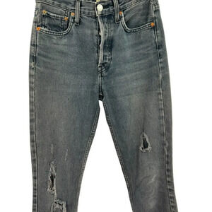 Re/Done Originals 90s High Rise Jeans Worn Black Destroyed Size 25