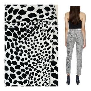 Let your wardrobe be heard. RE/DONE Originals fuses the ultimate cocktail of comfort and sex appeal with the High Rise Ankle Crop Jean. Designed with a high rise and cropped hem that's fearlessly fashioned with allover black and white cheetah print. Raw cut hem. Front and back pockets. 14" at the knee narrows to 11” at the leg opening.