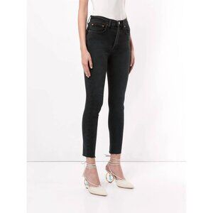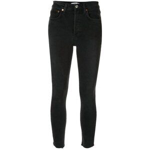 Re/Done Originals High Rise Ankle Crop Jeans in Black