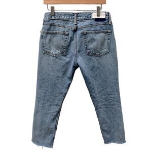 Details: Size 26, button fly, raw hems, cropped, relaxed, great Preloved Condition