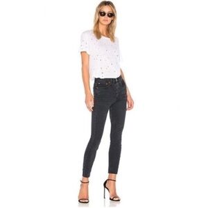Re/Done Redone Originals High Rise Ankle Raw Hem Crop Faded Black Jeans Size 25