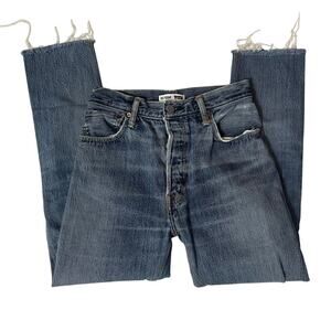 Re/Done High Waist Button Fly Cotton Denim Straight Leg Distressed Jean size 26