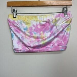 Re/Done Tie Dye Swim Tube Top Pink Yellow Blue Medium