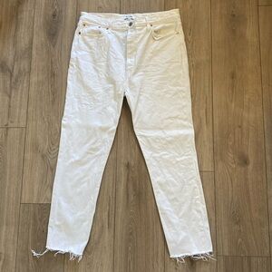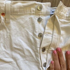 Re/Done White Denim Jeans | Straight Leg Distressed | Size 32