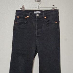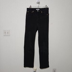Re/Done high rise straight leg jeans size 27 per tags see pics for verification of size used no holes or stains measurements approximately flat lay waist 14 front rise 11 inseam 31 1/2