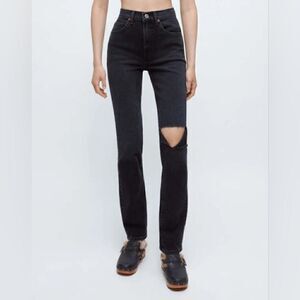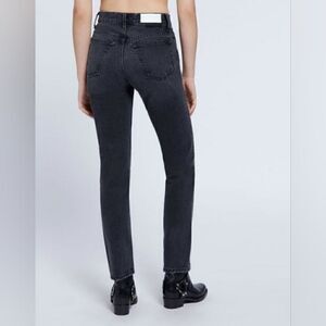 New with tags Re/Done 70's High Rise Straight Leg Distressed Denim Jeans In Black Size 27.