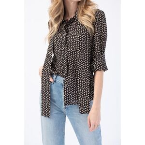 Re/Done 70s Tie Blouse in Beige and Black Croissant Print Size S