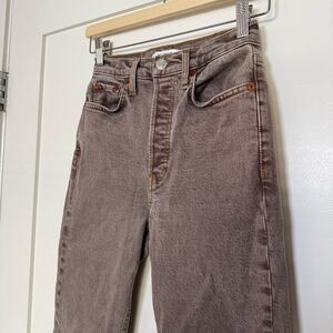 Re/Done Jeans Womens Sz 24 Brown 70s Ultra High Rise Stove Pipe Raw Hem