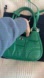 Stylish Prada shoulder bag in vibrant green leather. Features elegant silver hardware. Perfect for adding a bold touch to your look.