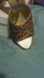 * 4 1/2 inch metallic finished stiletto heel with a 7/8 inch laminated wood platform