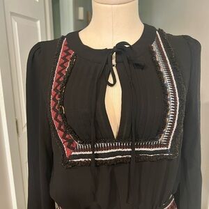Re-Named Two Textures, Black with Colorful Skirt Long Sleeve Mini Dress